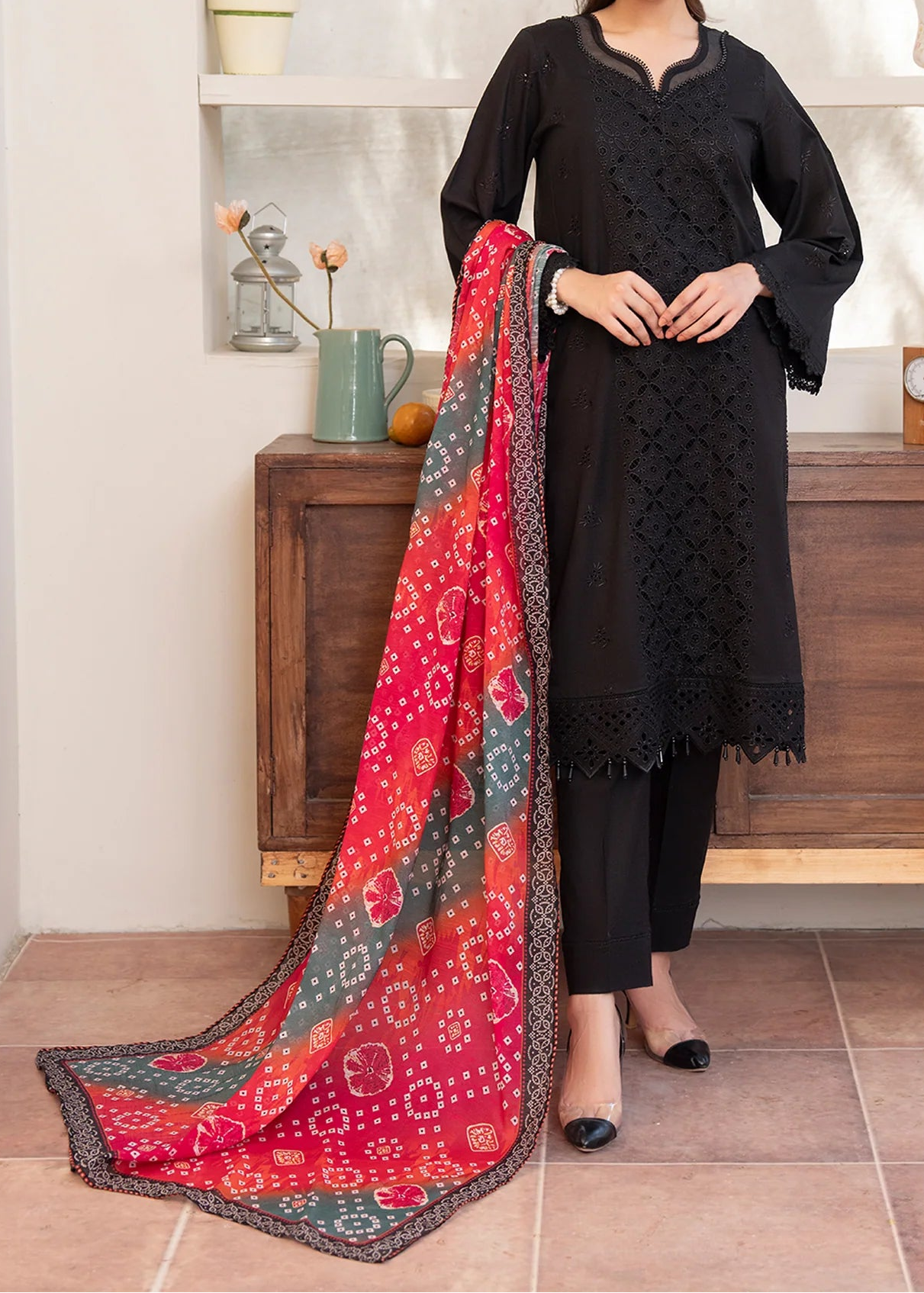 Grace S1325-Embroidered 3pc Lawn Dress With Printed voile Dupatta.