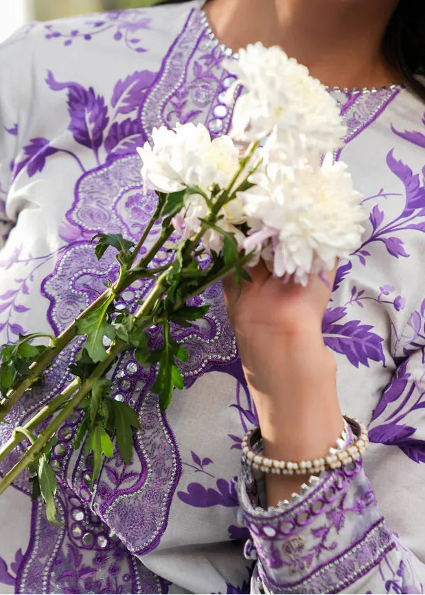 Grace W709-Embroidered 3pc Marina Dress With Printed Shawl