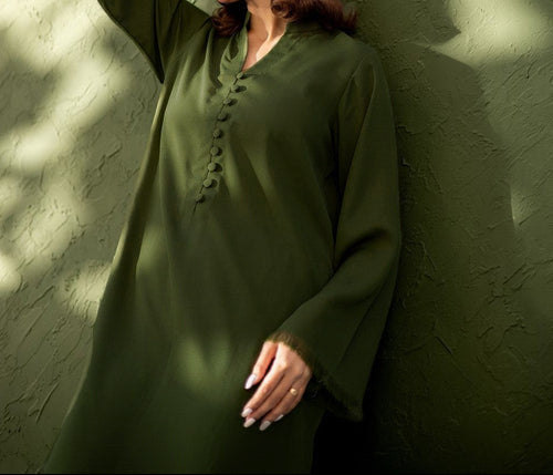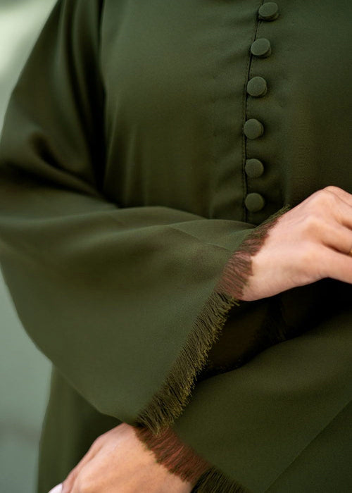 • Sleeves: Full-length sleeves with cuffed ends and matching fabric buttons