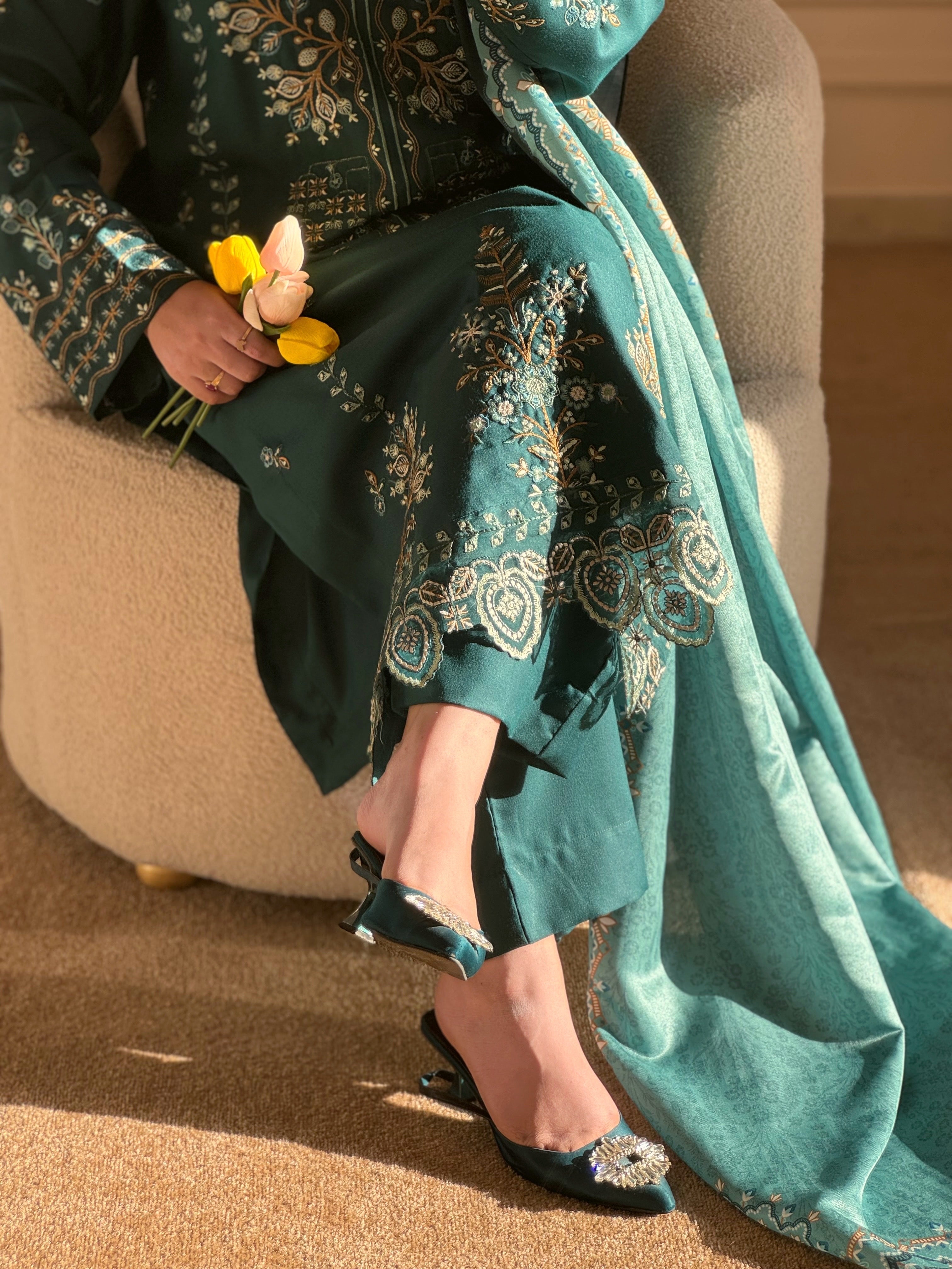 Grace W771 - Embroidered 3pc Marina Dress With Printed Shawl.