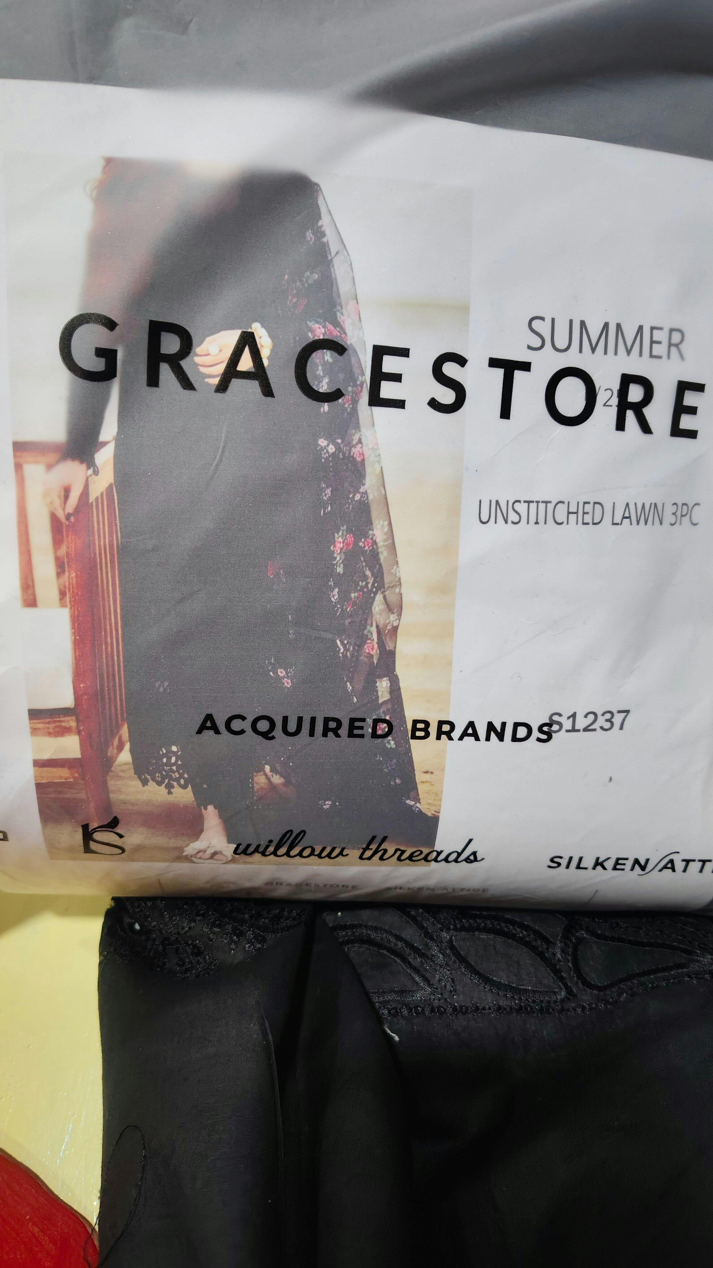 Grace S1237-Embroidered 3pc CHIKANKARI Lawn Dress With Printed Munar Dupatta.